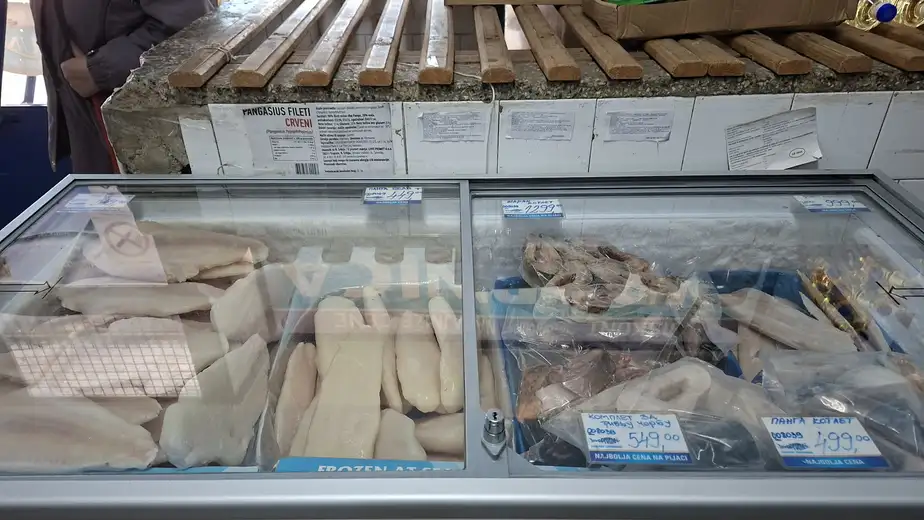 "Somovi se ove godine prodaju za oko 600 dinara po kilogramu, a pangasius između 350, 450, pa do 500 dinara po kotletu, u zavisnosti od veličine. Od ribljih proizvoda, najviše se prodaju riblji štapići i ribljie pljeskavice, koje se prodaju po ceni od 450 dinara po kilogramu.