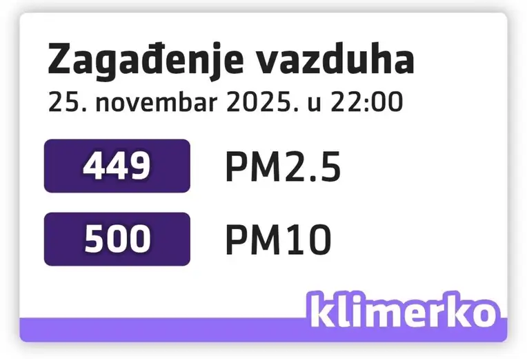 Jučerašnja merenja ukazuju da je u kasnim večernjima satima 25.11.2025. došlo do ekstremnog zagađenja vazduha u gradu na Timoku.