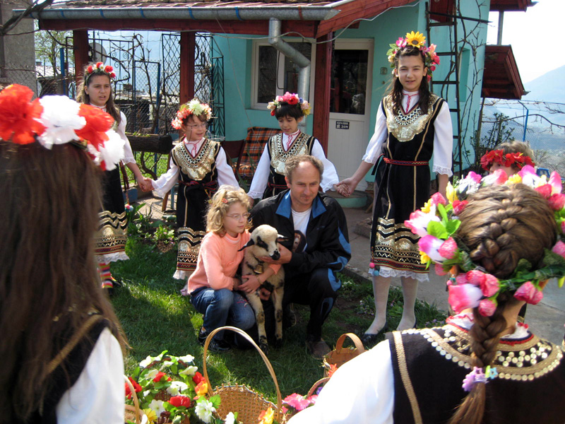 Pred kućom ih dočekuje domaćica i posipa žitom, a „lazarice“ je ljube u ruku, ulaze u kuću gde doručkuju za sofrom. Kad završe sa jelom, običaj je da sve odjenom bace kašike na sofru. Odatle kreću po celom selu od kuće do kuće i pred svakom igraju i pevaju pesme namenjene prvo kući, a zatim i svim ukućanima.