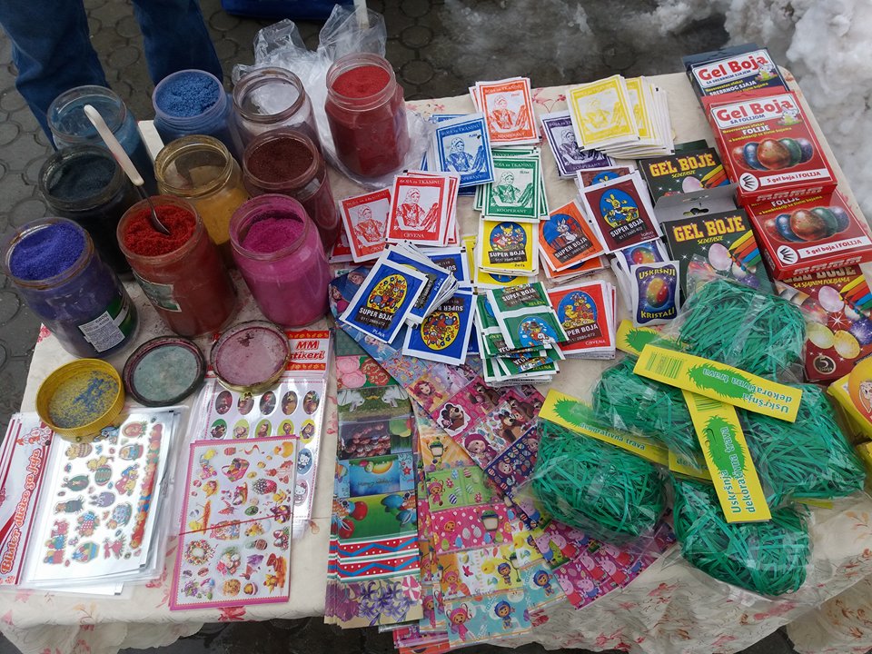 Na zaječarskoj pijaci započela je prodaja boja za bojenje vaskršnjih jaja, kao i različitih ukrasa bez kojih se ukrašavanje vaskršnjih jaja ne može ni zamisliti.