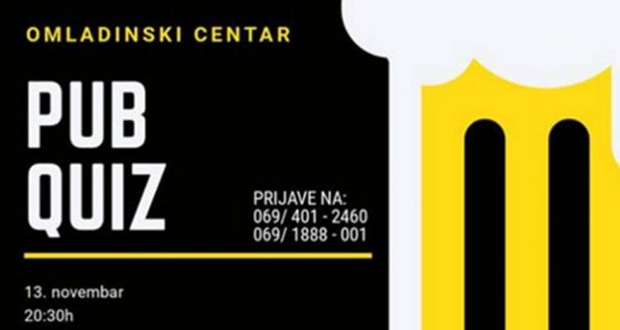 Večaras je na programu novi Pub kviz u Omladinskom centru. Zbog projekcije filma kviz počinje kasnije.