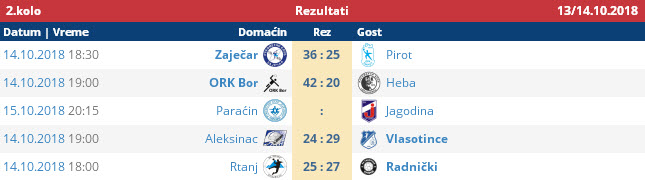 U 2. kolu PRVE LIGE ISTOK za rukometaše, postignuti su sledeći rezultati: