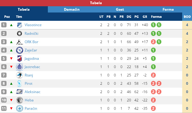 Posle drugog kola tabela izgleda ovako: