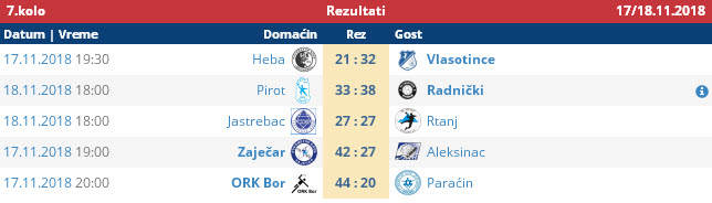 U 7. kolu PRVE LIGE „ISTOK“ za rukometaše, postignuti su sledeći rezultati: