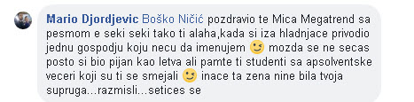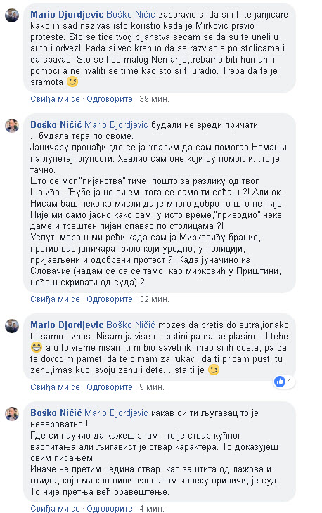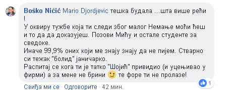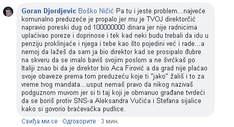 Zatim su prepucavanje nastavili sin Gorana Đorđevića i gradonačelnik Ničić. Mario Đorđević, sin Gorana Đorđevića, optužio je Ničića da PIJE i napisao je sledeće: