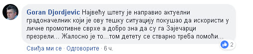 Prvi je reagovao bivši direktor JKP „Higijena“ Goran Đorđević i optužio svog nekadašnjeg koalicionog partnera Ničića da je pokušao da iskoristi humanitani koncert za malog Nemanju, kao svoju promociju, ali su ga građani Zaječar u tome prozreli.