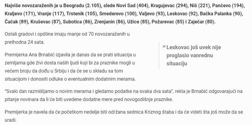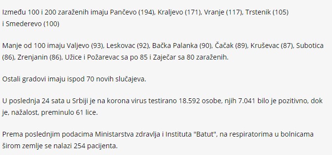 Pojedini mediji kao što su Srbija danas, Telegraf, Jug media objavili su informaciju dobijenu od Kriznog štaba, da među gradovima sa velikim brojem obolelih, je i Zaječar, i da je danas novih 80 lica pozitivno na ovaj virus.