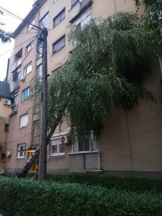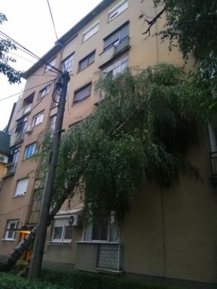 U ulici Hajduk Veljkovoj broj 9 nešto posle 18 časova snažan vetar oborio je jedno od stabala koja se nalaze u neposrednoj blizini stambene zgrade. Pad drveta zaustavio je sam stambeni objekat – veliko stablo naleglo je na zid zgrade, a srećom nije bilo veće i niko od stanara nije povređen.