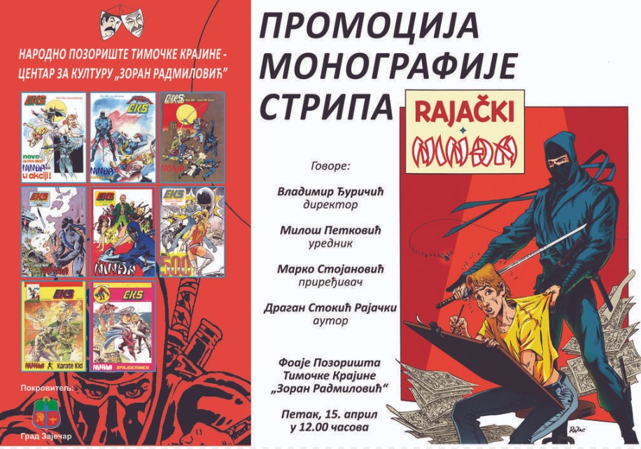 U foajeu zaječarskog pozorišta sutra će biti održana promocija monografije stripa „Rajački ninđa“ o jednom od najznačajnijih autora stripa ne samo u Srbiji več i na prostoru bivše Jugoslavije, Draganu Stokiću Rajačkom.