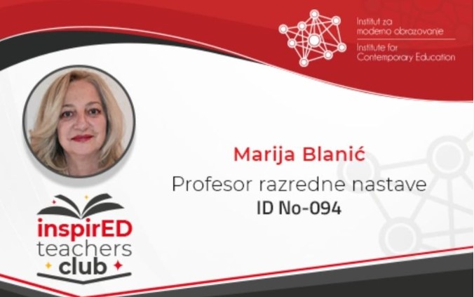 Stigla je još jedna lepa vest za OŠ Ljubica Radosavljević Nada. Učiteljica Marija Blanić, svojim angažovanjem postala je članica InspirED Teacher Club, Instituta za moderno obrazovanje.