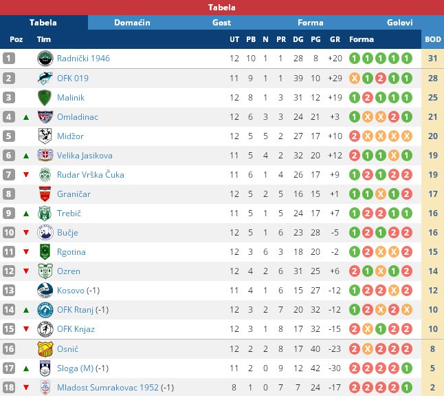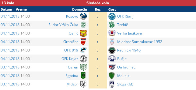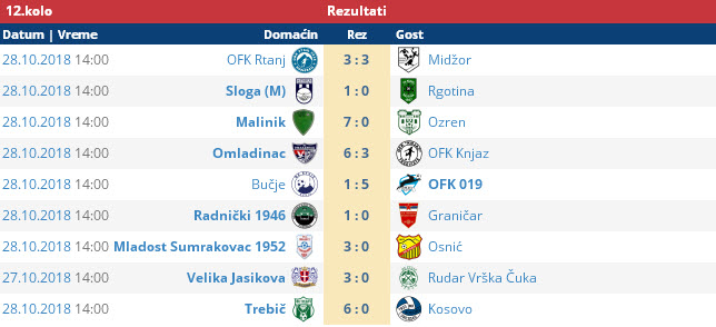 Za vikend su odigrane utakmice 12. kola ZAJEČARSKE OKRUŽNE LIGE. Postignuti su sledeći rezultati: