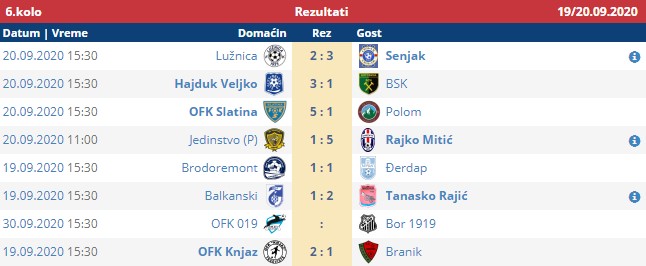 U subotu i nedelju odigrane su sve utakmice 6. kola Zone „Istok“. Odložen meč OFK 019 – Bor, Hajduk Veljko osvojio tri boda, Knjaz takođe do pobede.
