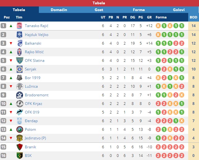 Tabela Zone „Istok“ sada: